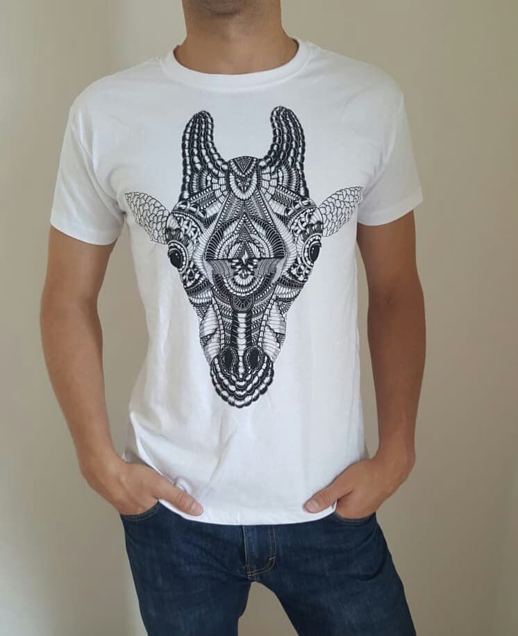 Unique Design Men Tee Giraffe Tee Giraffe Tshirt White T Shirt Wild