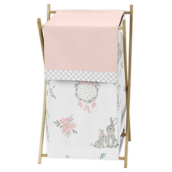 Sweet Jojo Designs Bunny Floral Laundry Hamper In Pink Grey Bed